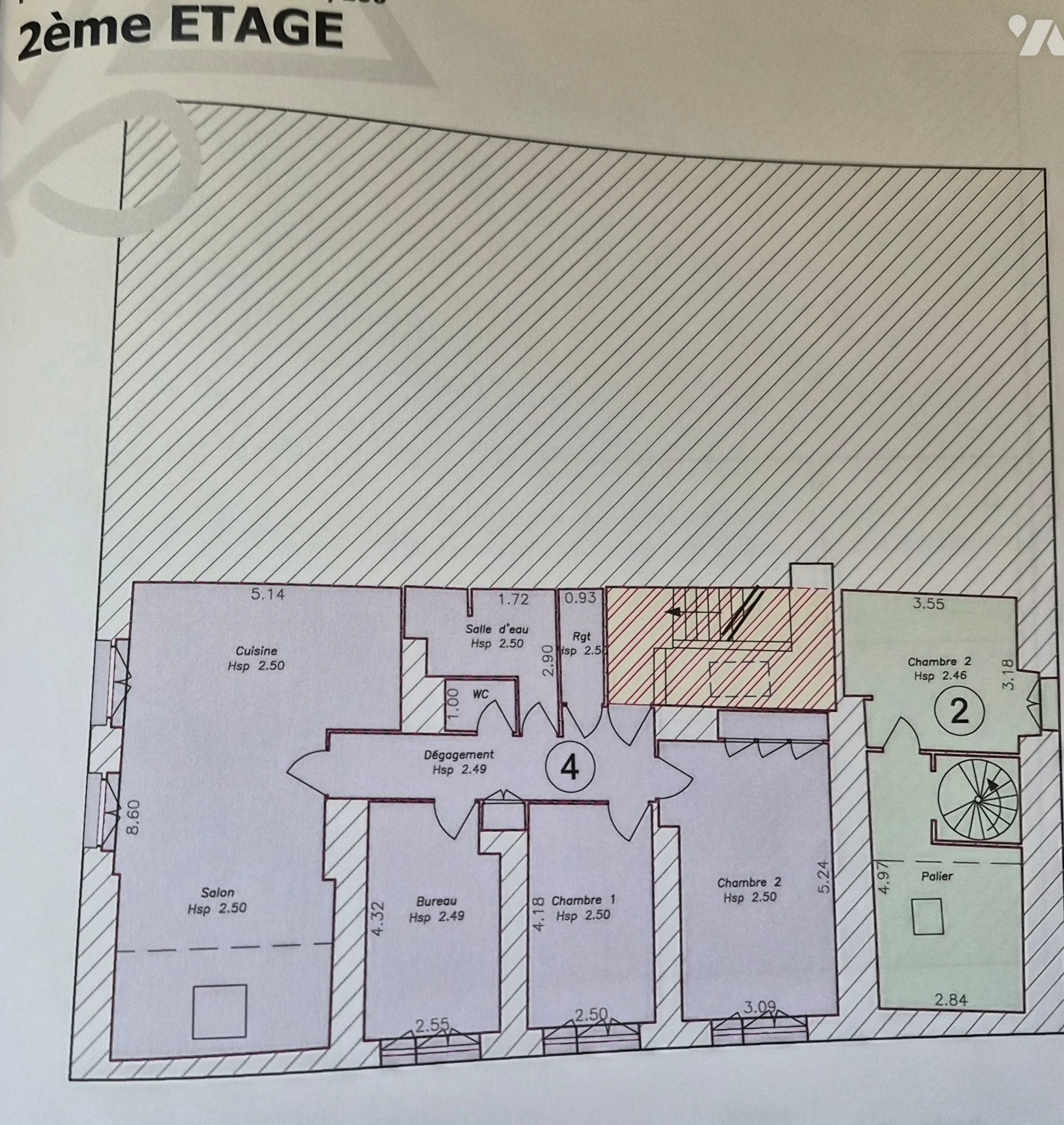 Appartement 4 au 2ème étage : 107,42 m² de Type 3